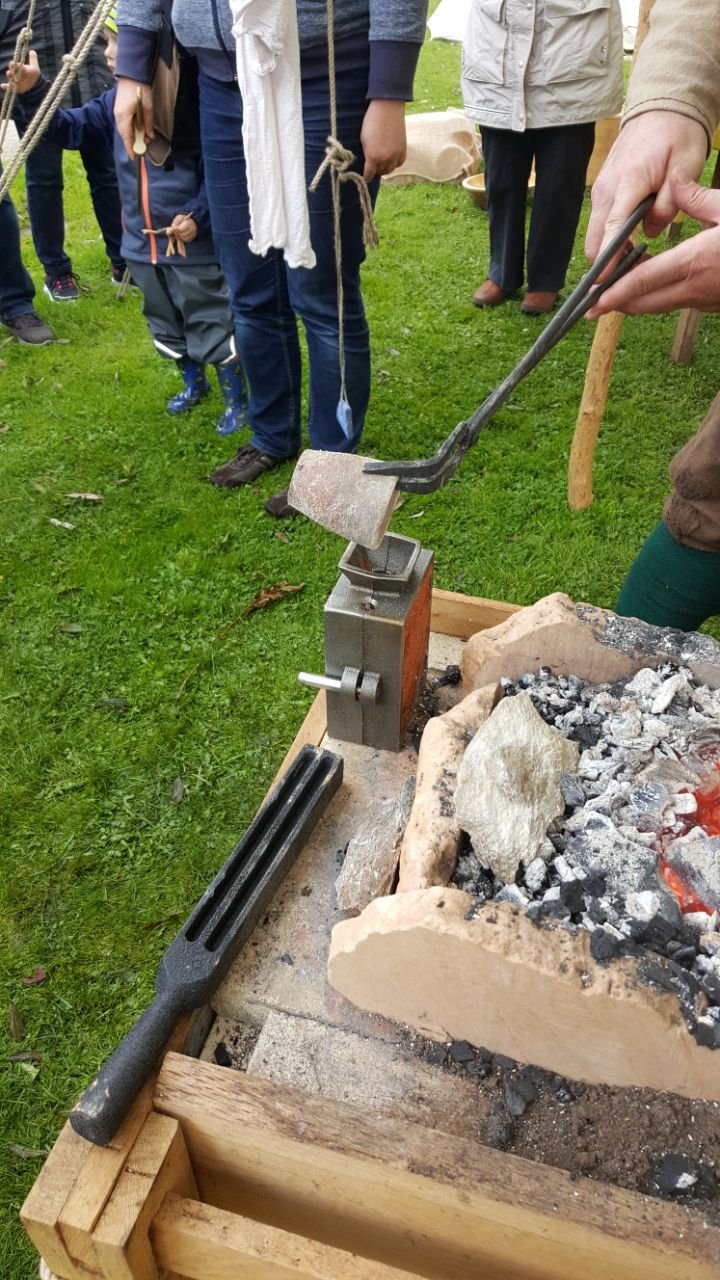“Actually the main content of these moulds was horse or cow dung, fresh from animals at pasture. I prefer horse dung, but I am sure cow dung was used more in the Viking Age. You also need hair – horsehair is good, but human hair works fine too. The clay has to be free from lime and as fine-grained as possible. Then you need some chamotte to temper the mixture. Here you reuse old used moulds (crushed pottery when no old moulds are at hand). I normally go for a mixture of 50% dung, 35–40% clay, 8–12% chamotte and some 3% hair (ca. volume). If in doubt, add more dung and hair, not more clay.”*